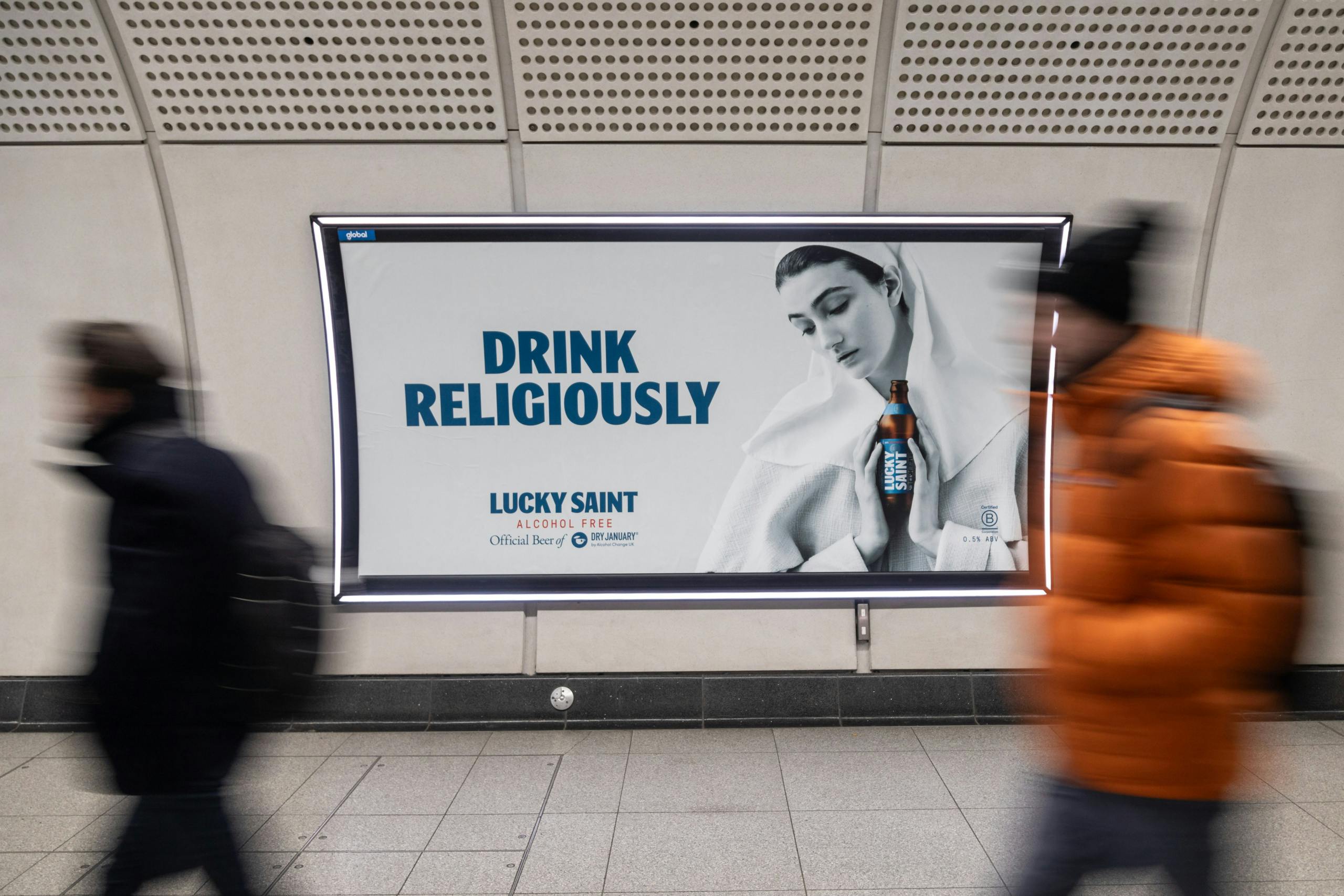Whether it’s lunchtime meal deals or partnering with half-marathons, Lucky Saint is able to play in spaces where alcoholic beer would be out of place.