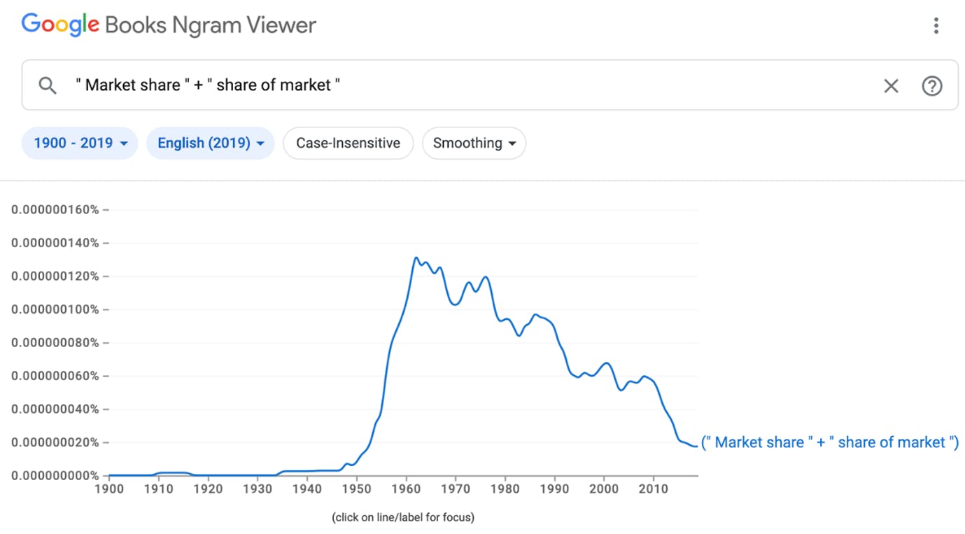 Share of market (or market share) is the Patient Zero of all the ‘share of’ metrics. It really caught on from the 1950s onwards with the explosion of mass production and mass consumerism, as global markets grew, competition intensified and assessing a company’s market position relative to competitors became a priority.