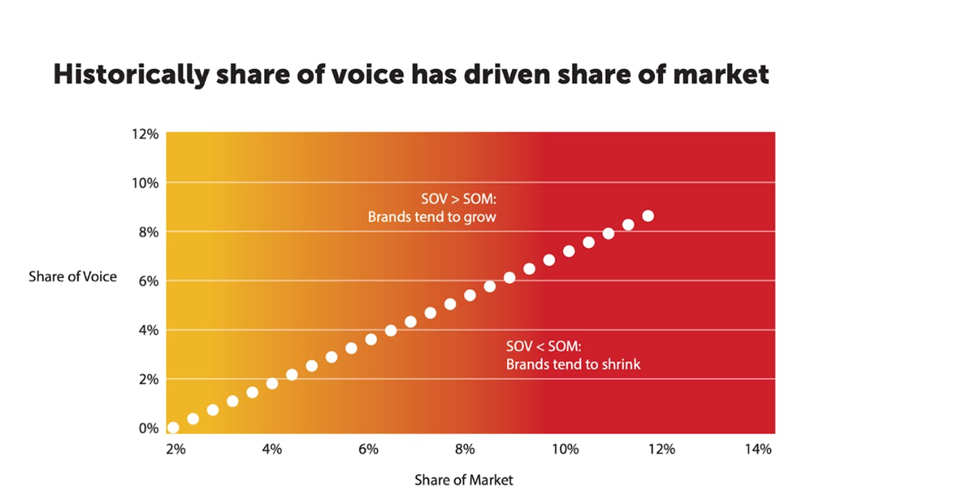 James Peckham at Nielsen brought all this out into the open in the early 70s, and then John Philip Jones made it famous with a big, multimarket study in the late 80s and early 90s. The key insight in all this work was that brands investing more in media than their market share implied were much more likely to grow their market share over the longer term.