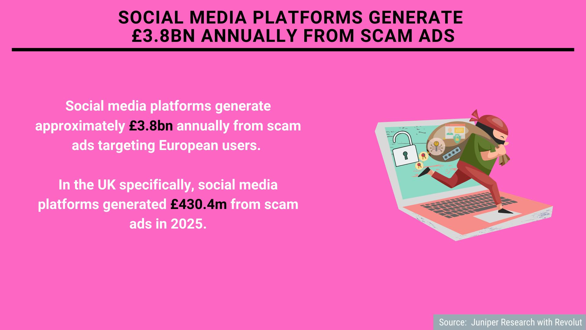 Social media platforms generate approximately £3.8bn annually from scam ads targeting European users, according to data from Juniper Research commissioned by Revolut.