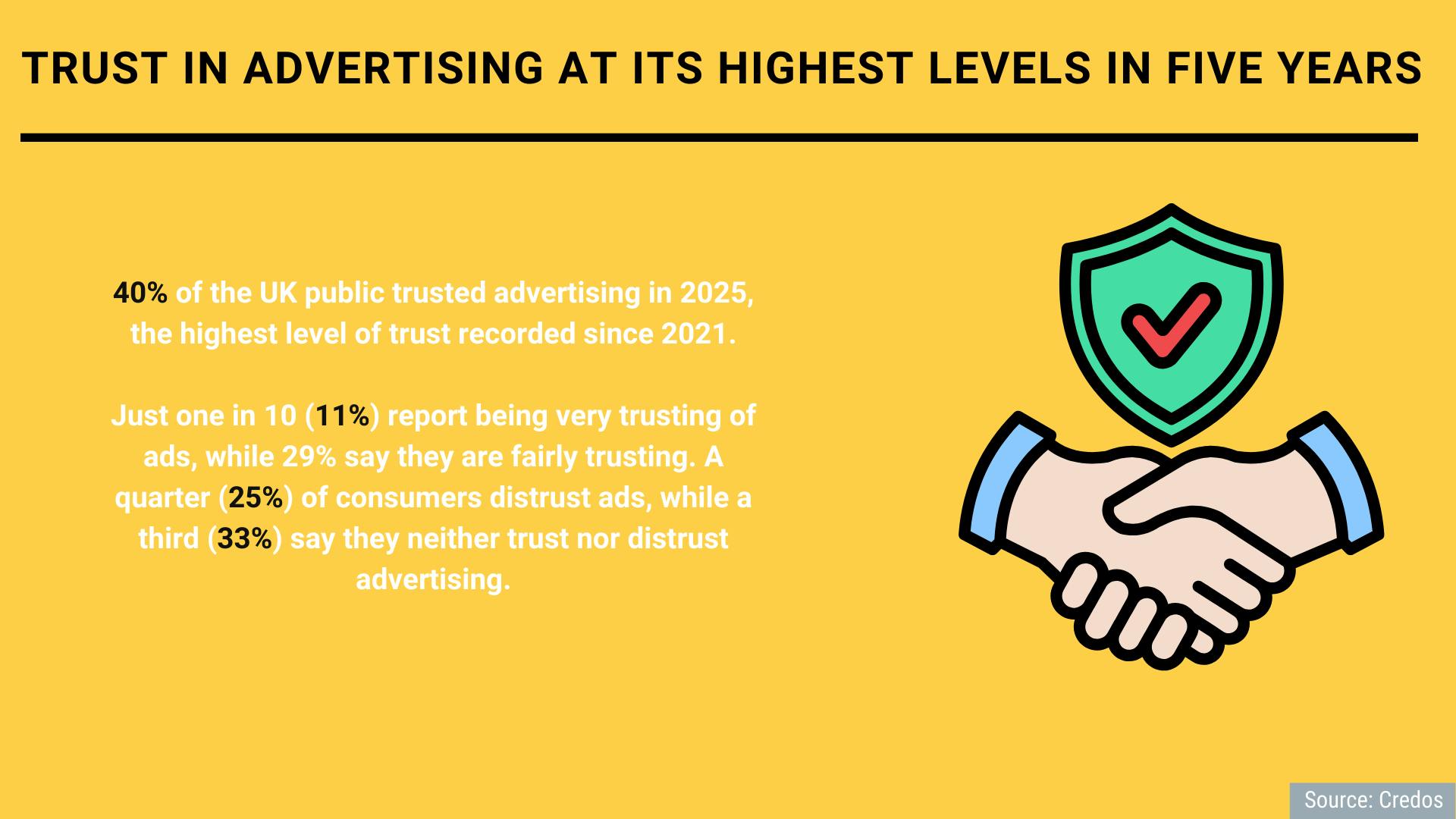 Research from industry think tank Credos, found 40% of the UK public trusted advertising in 2025, the highest level of trust recorded since 2021. The data comes from the Credos Trust Tracker, which surveys around 2,000 participants each year.