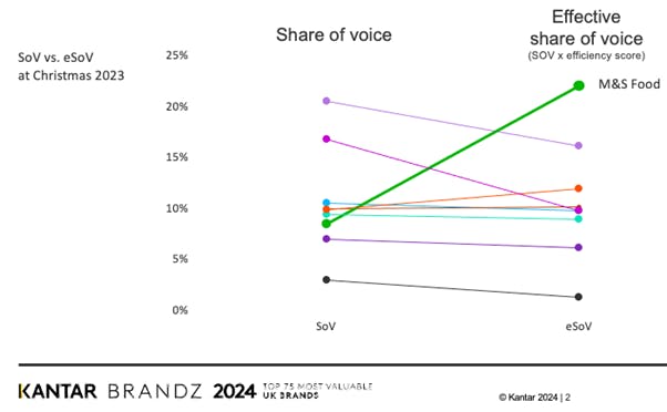 Confusingly, Kantar cites another ESOV in its expert assessment of how M&S grew its brand. But the E in its acronym does not mean ‘excess’. When Kantar says ESOV, it means effective share of voice. For Kantar, it is one thing to invest in advertising media, quite another to do so with creative quality, given creative is the number-one driver of effectiveness that marketers can control.
