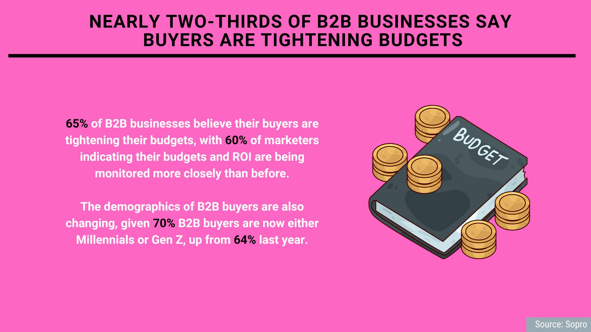 Almost two-thirds (65%) of B2B businesses believe their buyers are tightening their budgets, with 60% of marketers indicating their budgets and ROI are being monitored more closely than before.