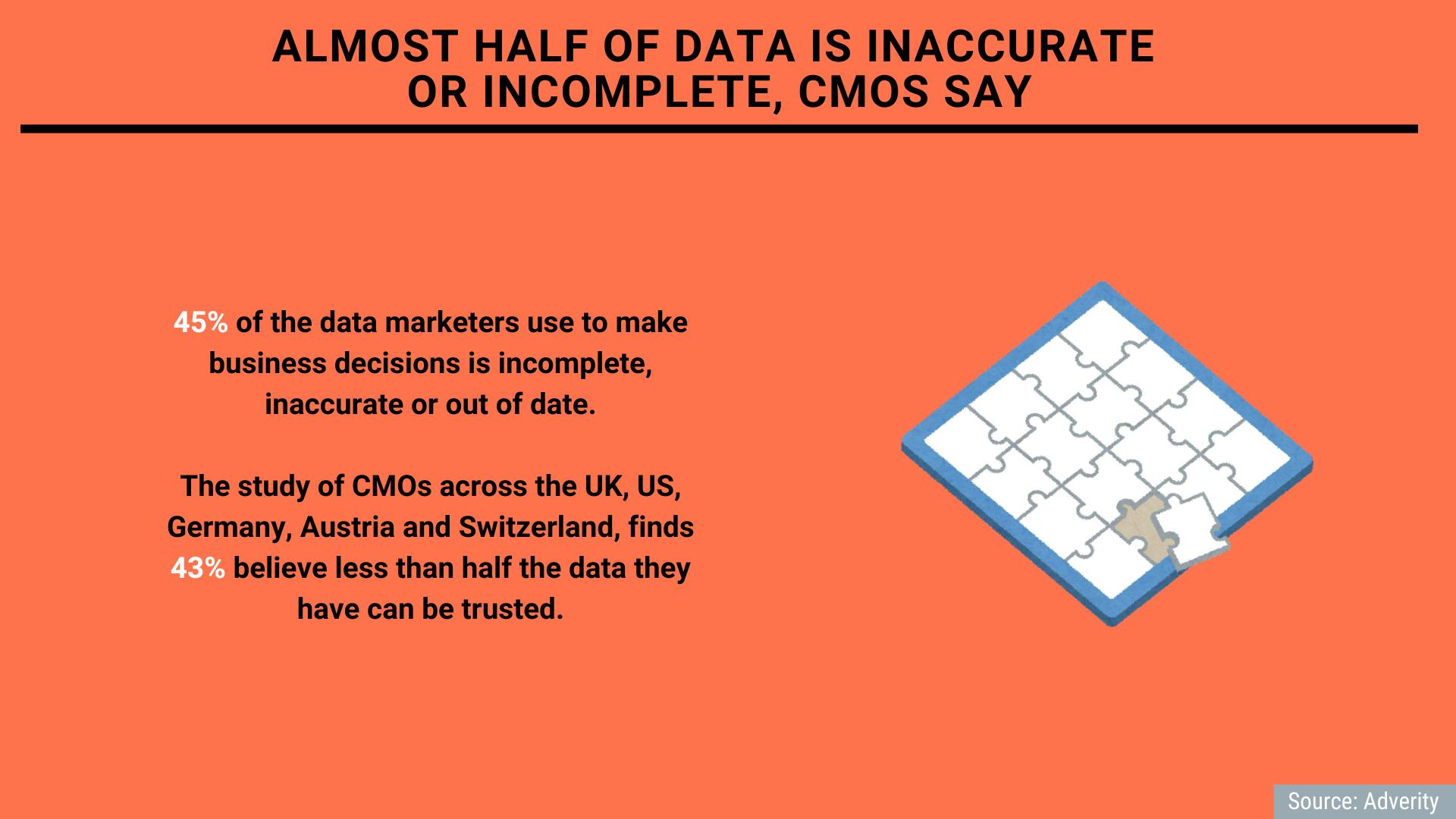 Nearly half (45%) of the data marketers use to make business decisions is incomplete, inaccurate or out of date, according to research by Adverity.