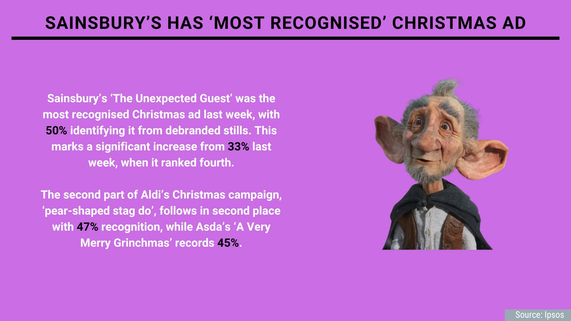 Sainsbury’s ‘The Unexpected Guest’ is the most recognised Christmas ad, according to exclusive Ipsos Race to Christmas data.