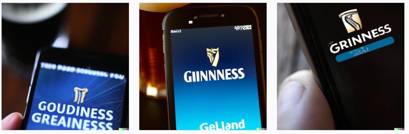 When we asked Dall-E to generate a Guinness ad for the LinkedIn mobile app, we got the below image.