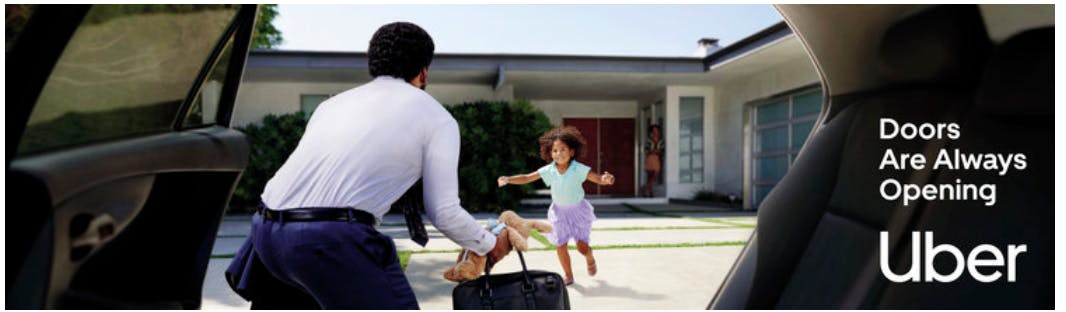 For the long work, in most Uber countries there are a series of brand campaigns that push the emotional benefits of travel. Inevitably and rather cleverly the focus is on the top of the benefit ladder; or, in Uber’s case, the end of the journey, when it delivers you to your destination and the emotional benefit that awaits. In the US, for example, the brand uses TV, outdoor and digital media to associate Uber with these moments. It’s mass-market, it’s emotional, it’s brand-focused and it asks nothing of the consumer other than to see Uber as more than a ride-sharing service.