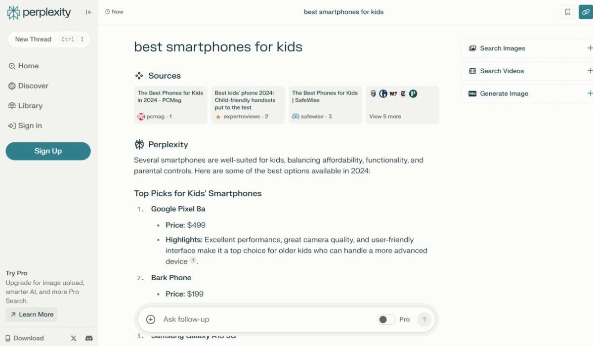 In reality, AI search engines aim to reduce the results you get from searches. The less is more approach. Perplexity already does this, as you can see below.