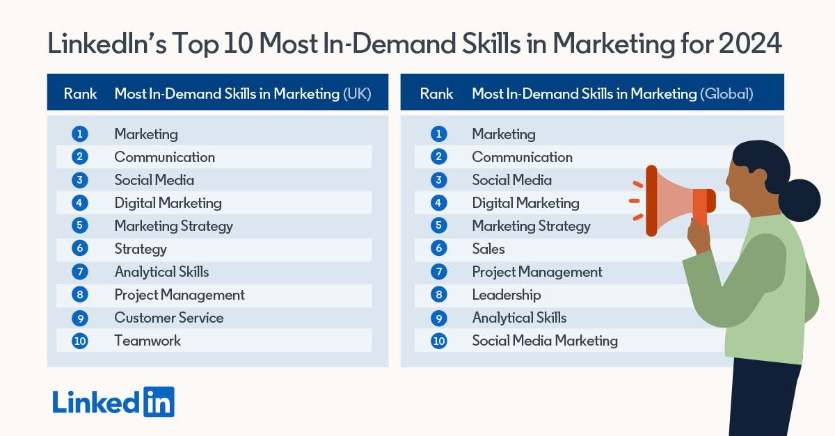 Communication, strategy and analytical skills are among the fastest growing soft skills for UK marketers, according to data from LinkedIn.