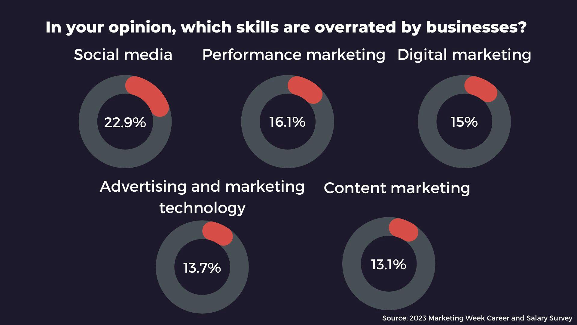 Marketing Week’s 2023 Career and Salary Survey reveals the skills marketers believe their businesses overrate with social media, performance marketing and digital ranked highest.