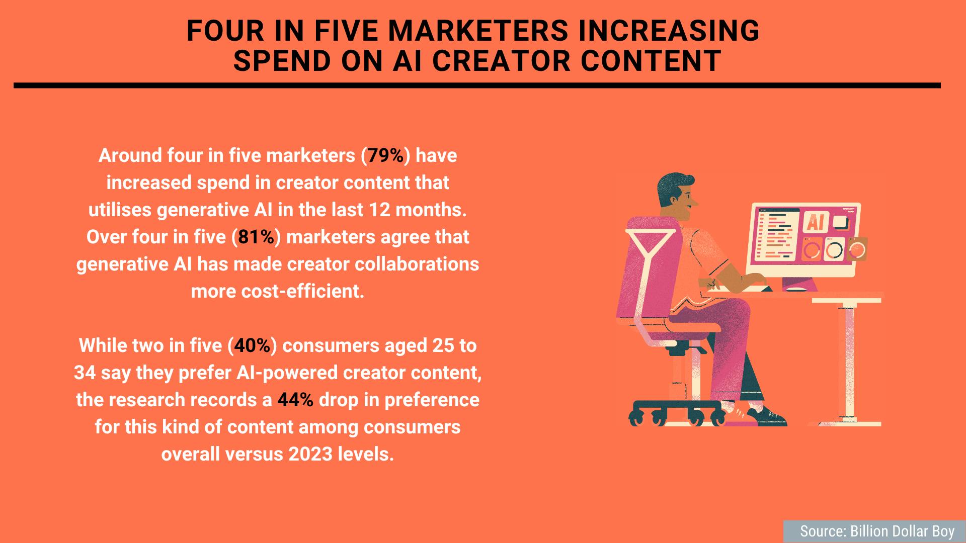 Around four in five marketers (79%) have increased spend in creator content that utilises generative AI in the last 12 months, according to data from Billion Dollar Boy.