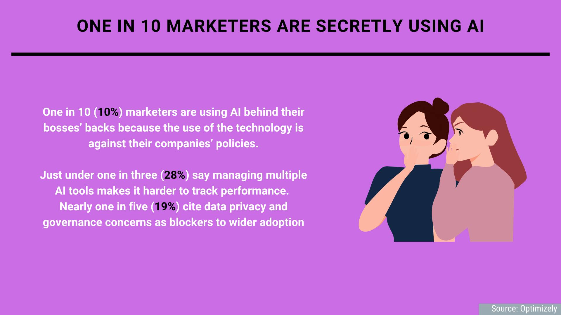 One in 10 marketers are using AI behind their bosses’ backs because the use of the technology is against their companies’ policies.