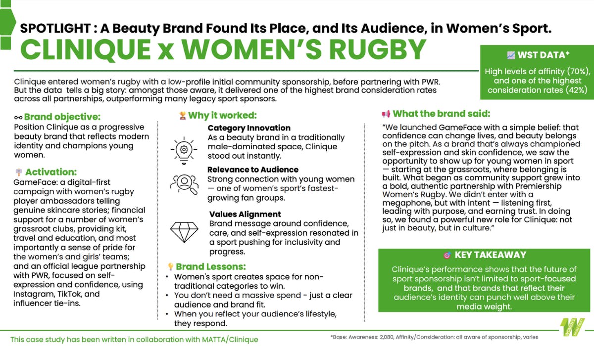 “[Clinique] took the time to understand the different values of different women’s sports,” says Tom Allwood, co-founder and managing director at Matta.