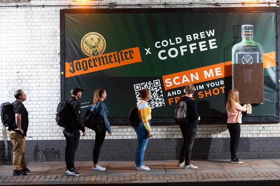 Visitors are given a sample-size Jägermeister Cold Brew Coffee Liqueur bottle to take away as part of a goodie bag. They are also able to use a dispensing billboard, which has been giving away free takeaway bags of Caravan Coffee Roasters coffee beans.