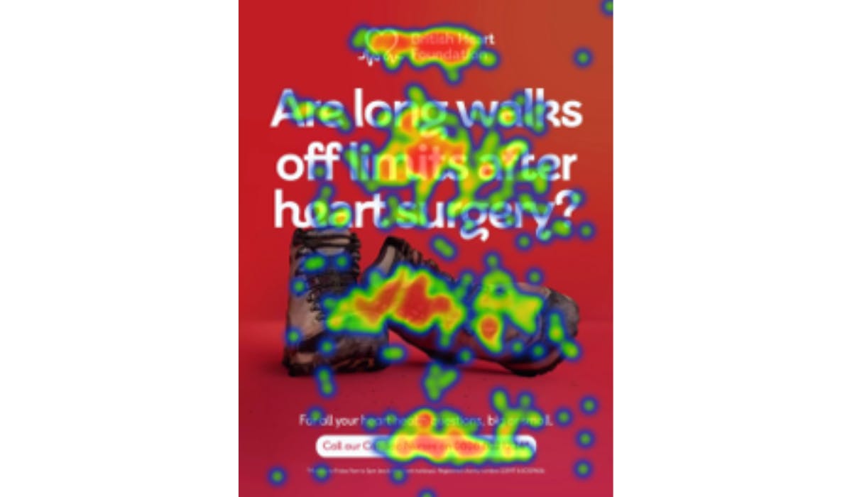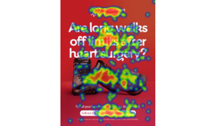 By tracking eye movements, Kantar discovered that the ad guides people from the question to the phone number at the bottom and the BHF logo at the top.