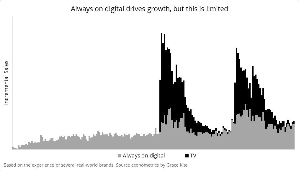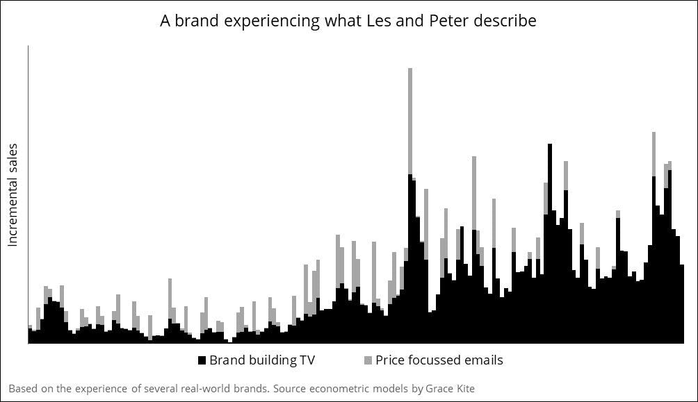But, just as Les and Peter’s chart predicts, the business didn’t begin to see growth until it increased its investment into longer-lived brand-building activity on TV.