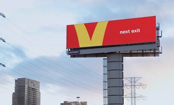 The lack of name, the lack of logo, the lack of product force the driver to mentally complete the puzzle. When they do, the subsequent answer is far more apparent and salient than just a big picture of McDonald’s with a burger beneath it.