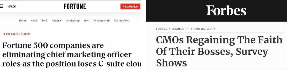 So, which is it? Are companies losing faith in marketing and CMOs? Or gaining it? Is the CMO role on the way out? Or back in?