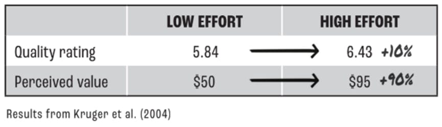 The key point is: the exact same piece of work was rated better and valued more highly when people were told that more effort had gone into it. But Kruger explores impressions of a poem — a somewhat esoteric focus. You might sensibly wonder if this can be extrapolated to commercial settings.
