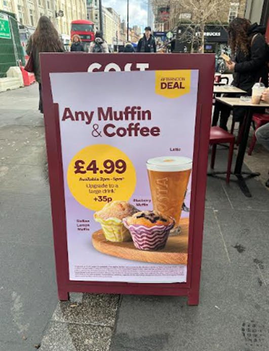 So, the way Costa describes the upgrade to large coffee makes it far more likely you’ll go for it. Let’s head inside and see what other behavioural devices we notice.