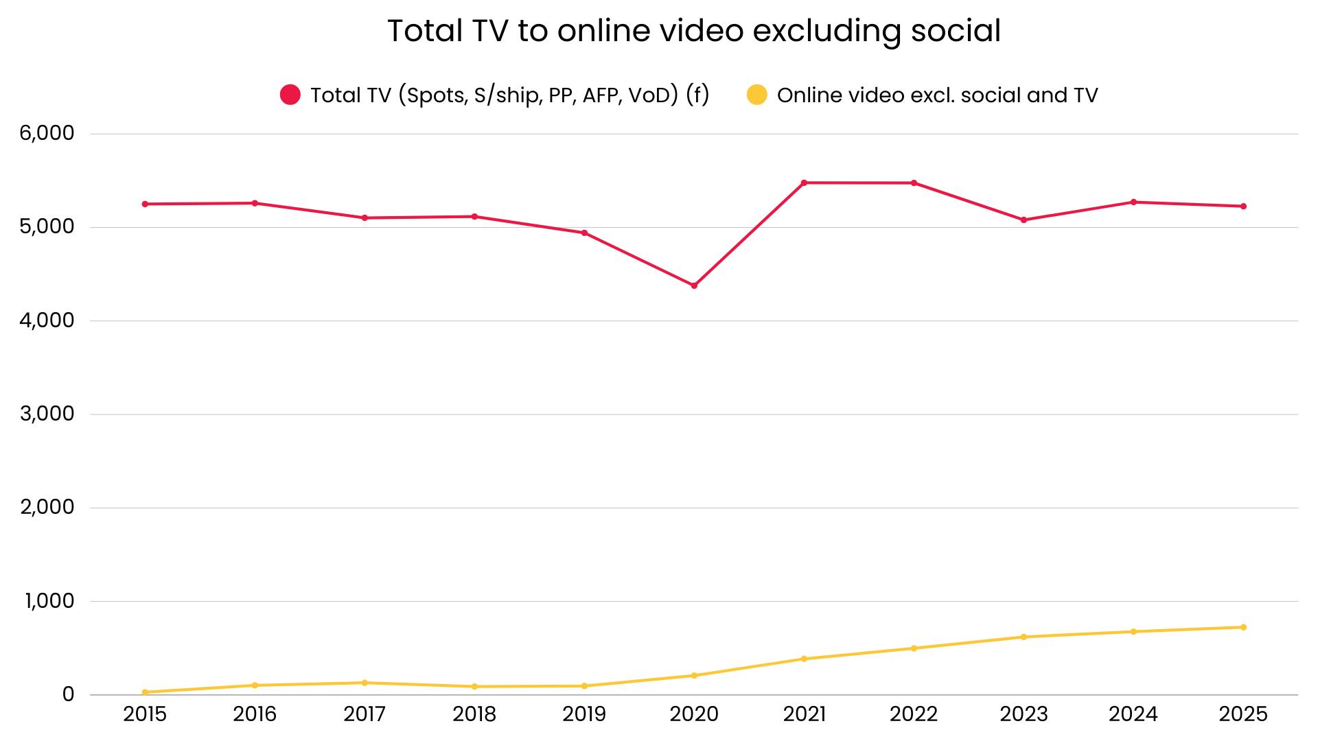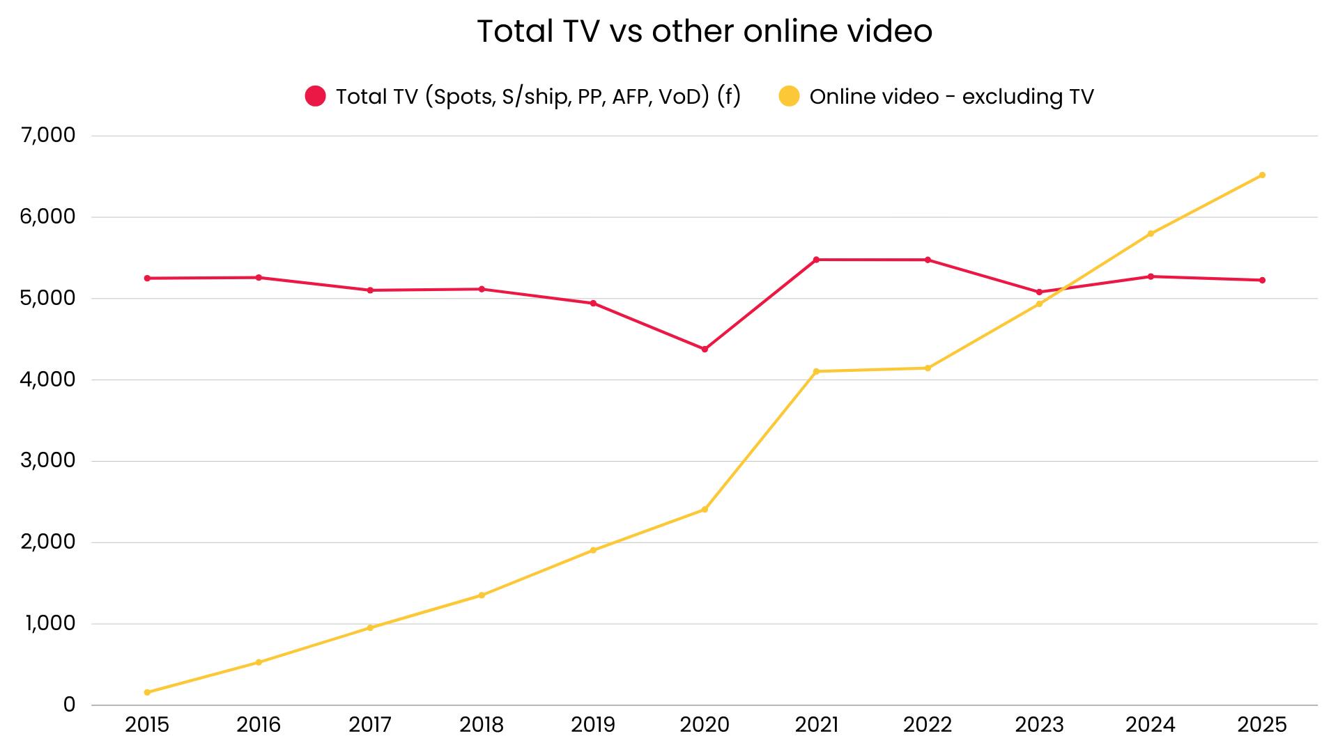 Because YouTube is classified as social media, the data also shows that much of the growth in ad spend is flowing to social platforms rather than other online video and total TV remains strong.