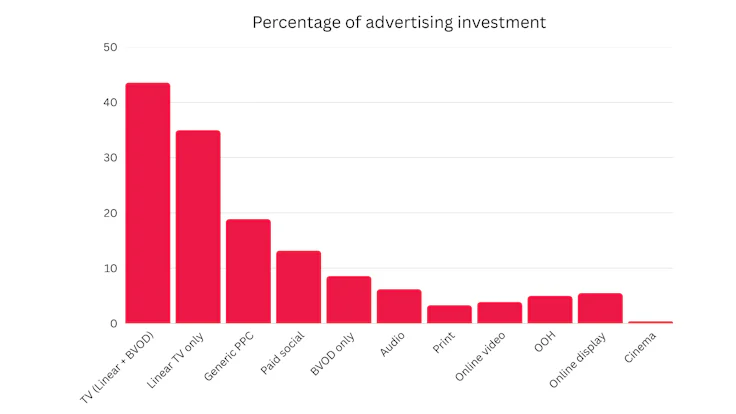 TV accounts for 54.7% of total advertising-generated profit, with an average ROI of £5.61 for every £1 spent. Of that, linear TV accounted for 46.6% of payback and BVOD 8.2%.