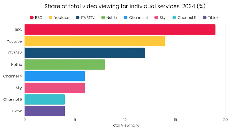 When total TV, which now includes the likes of Netflix, Amazon Prime and similar platforms, is compared with wider online video, the picture appears more balanced.