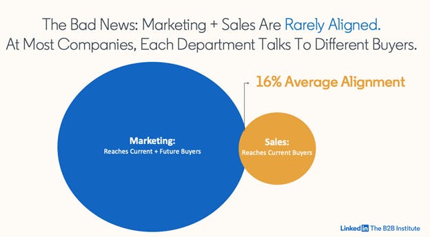This is the average ‘alignment’ between B2B marketing and B2B sales. That is the blockbuster finding of a recent analysis from LinkedIn that measured the targeting overlap between sales and marketing across 7,046 B2B organisations.