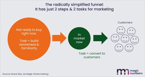 Also important is what’s not in the simplified funnel. By focusing on just two states, it unmuddles the mid-funnel, something that creative strategist Tom Roach has argued is long overdue.