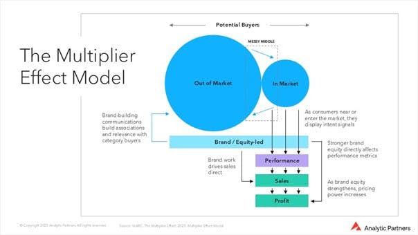 Perhaps the most developed version of the Margherita Funnel is the figure below, which was developed by Warc, Analytic Partners and co-authors in a recent report called ‘The Multiplier Effect’.