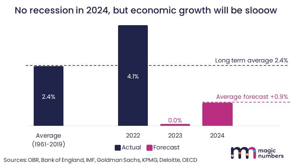 The good news is that in all the recently published forecasts, economists are much more optimistic than they were. Inflation is slowing and coming under control. And although higher interest rates will damage people’s finances, economists agree this won’t be enough to cause a recession.