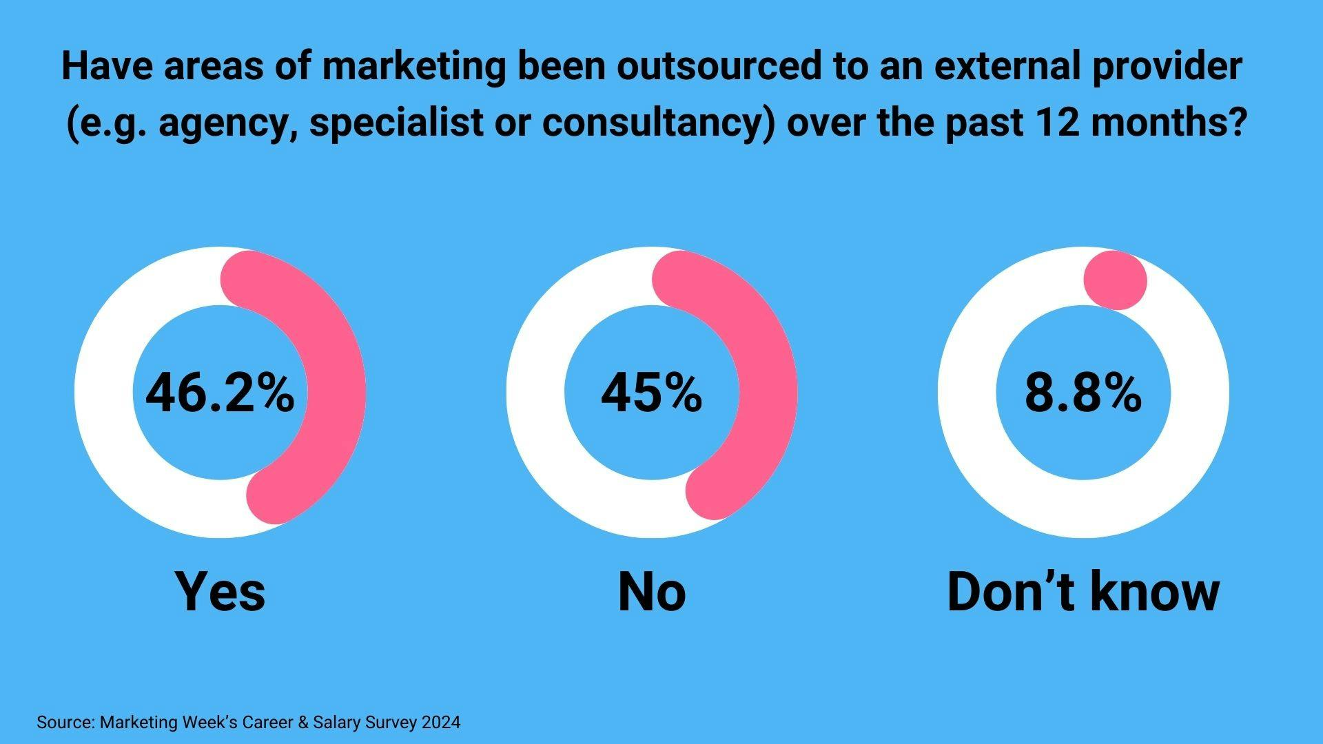Marketing Week’s exclusive Career & Salary Survey finds 46.2% of marketers agree that an element of marketing had to be outsourced over the last 12 months to an agency, specialist or consultancy.