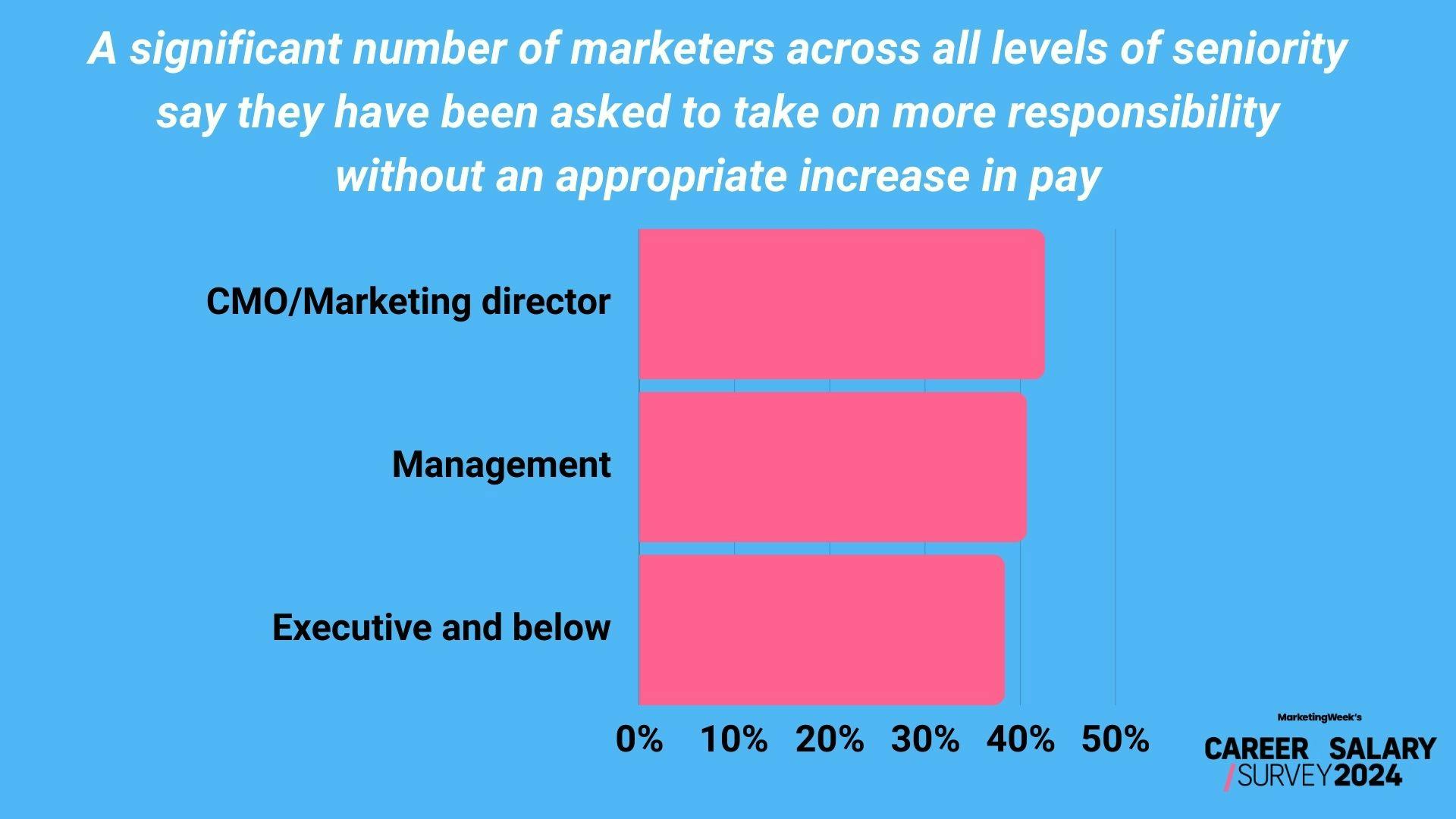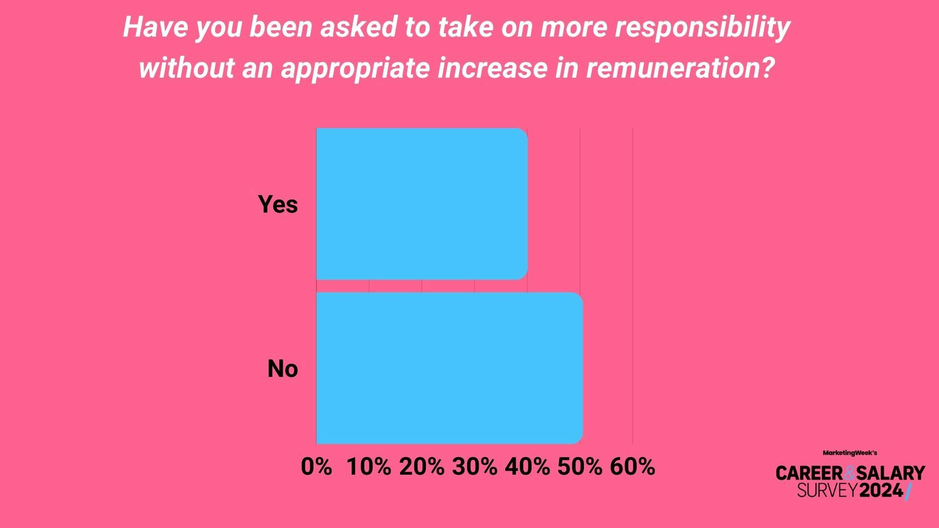 A significant number of marketers (40.1%) are being asked to take on more responsibility without seeing a sufficient increase in remuneration, according to Marketing Week’s exclusive 2024 Career & Salary Survey.