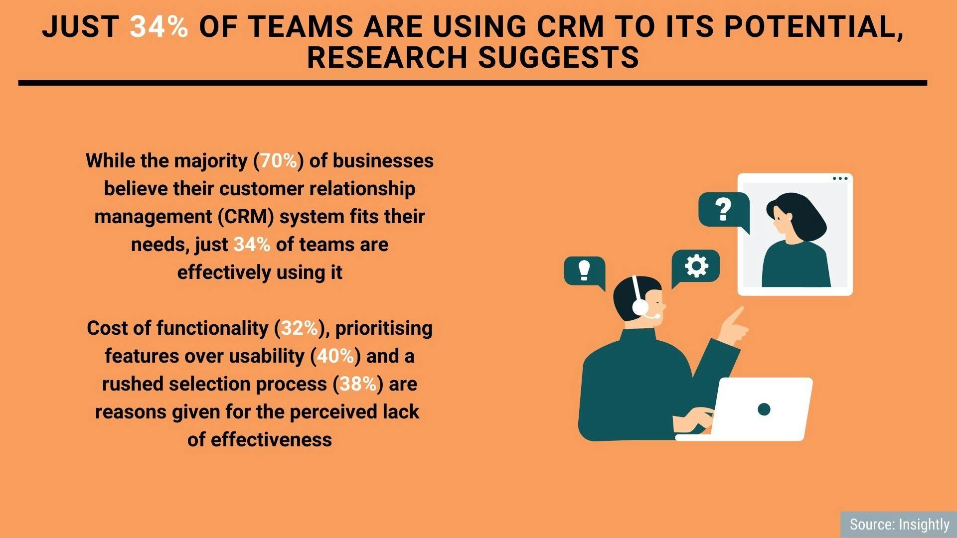 While the majority (70%) of businesses believe their customer relationship management (CRM) system fits their needs, just 34% of teams are effectively using it.