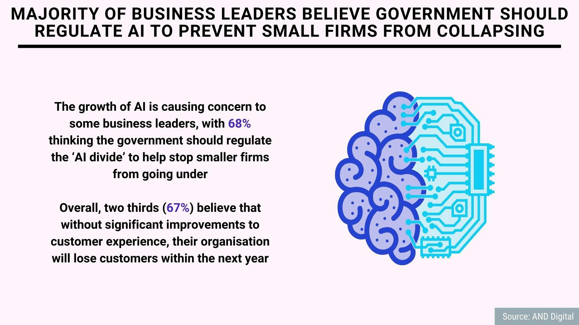 Majority of business leaders believe government should regulate AI to prevent small firms from collapsing