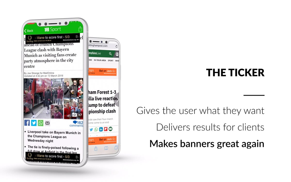 Since The Ticker was introduced, advertisers have seen a 1,200% increase in conversions over standard display ads that had previously been running, a 40% reduction in cost per funded betting account (£360-£600), a 100% decrease in cost per click (below £1), while viewability increased to more than 90% and retention of existing customers improved 10-fold.